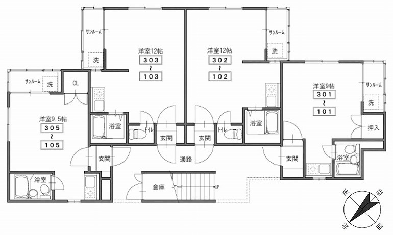 間取り詳細 | ・1R 浴室、トイレ同室内3点UB:(9 or 9.5帖)× 6世帯 ・1R 浴室、トイレ別セパレート:(12 or 13帖)× 6世帯 |