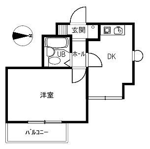 間取り詳細 | 1K(洋間、K)3点UB 2階 201号室 |